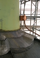 Die Untersuchungen der Bausubstanz haben gezeigt, dass dem Auseinanderstreben des Turmschaftes noch mit keiner wirksamen Konstruktion entgegen gewirkt wurde.