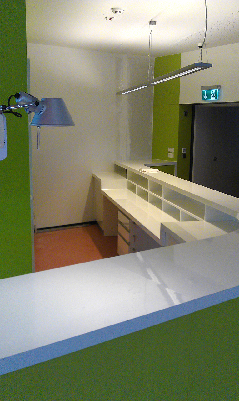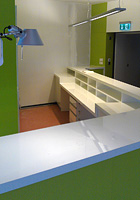 Einrichtung Studienambulanz Helmholtz-Kohorte – Geschoßumbau ehemaliges Universitätsklinikum der Martin-Luther-Universität Halle zu Empfangsbereich mit Untersuchungsräumen