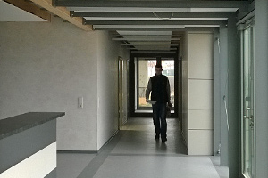 Zur Wärmeversorgung werden abgehangene Deckenpanele eingesetzt, die gleichzeitig akustische Funktionen übernehmen und in der warmen Jahreszeit über die versorgende Erdwärme auch zur Kühlung der Räumlichkeiten verwendet werden können. Ergänzend zum ganzheitlichen Energiekonzept ist auf dem Flachdach eine PV-Anlage installiert, die der Abdeckung des Eigenbedarfs sowie der Bereitstellung von Energie für die Wärmepumpen dient.